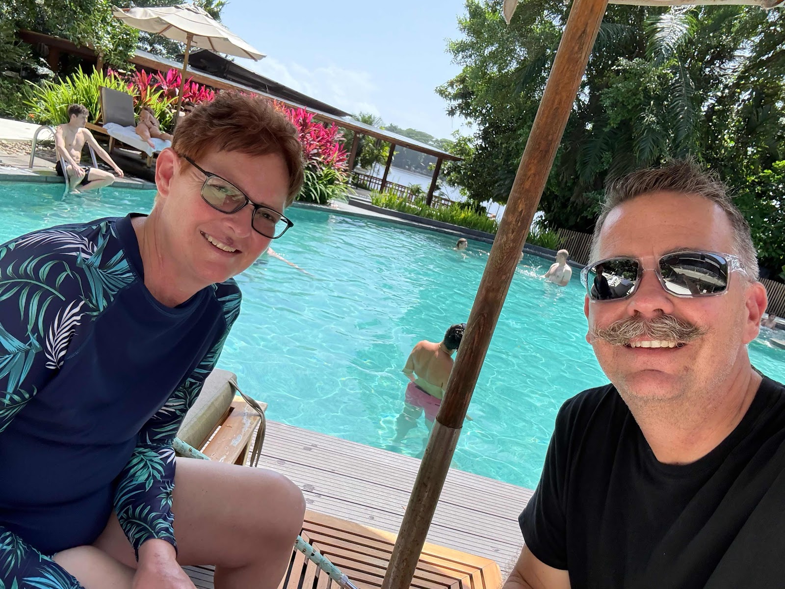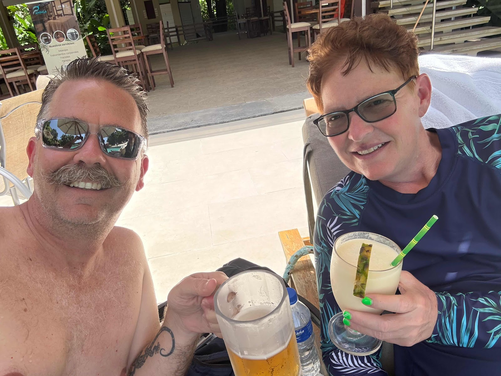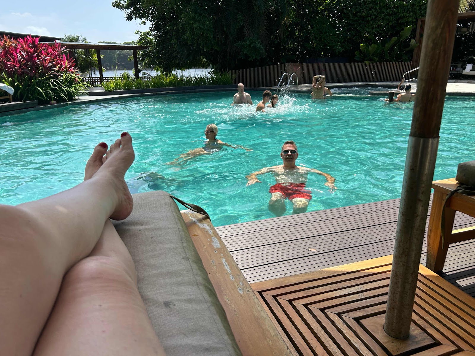 While having our before-dinner cocktails near the pool, a Spider monkey mom and baby were swinging in the trees above the pool. We didn’t take any pictures. We just enjoyed looking at them.