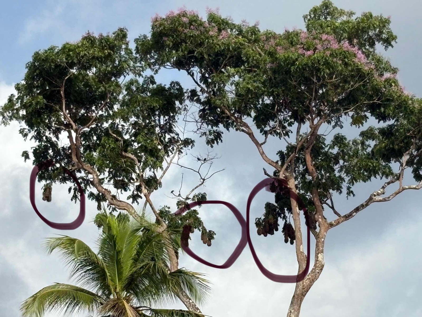 Hanging, woven nests of the Montezuma Oropendola